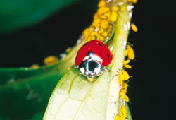 Dès qu’un insecte ravageur pullule, ses ennemis naturels en font autant, avec un décalage de temps. Une fois leur mission accomplie, la population des insectes utiles diminue elle aussi. Un jardin équilibré est donc un endroit où les colonies de pucerons, par exemple, restent suffisamment faibles pour ne pas causer de tort aux plantes, tout en permettant à leurs ennemis naturels, les coccinelles ou les chrysopes, de s’y maintenir en permanence. Pour contrer efficacement et à long terme les populations d’insectes ravageurs, il faut faire en sorte que le plus de prédateurs naturels possible se trouvent constamment au jardin.